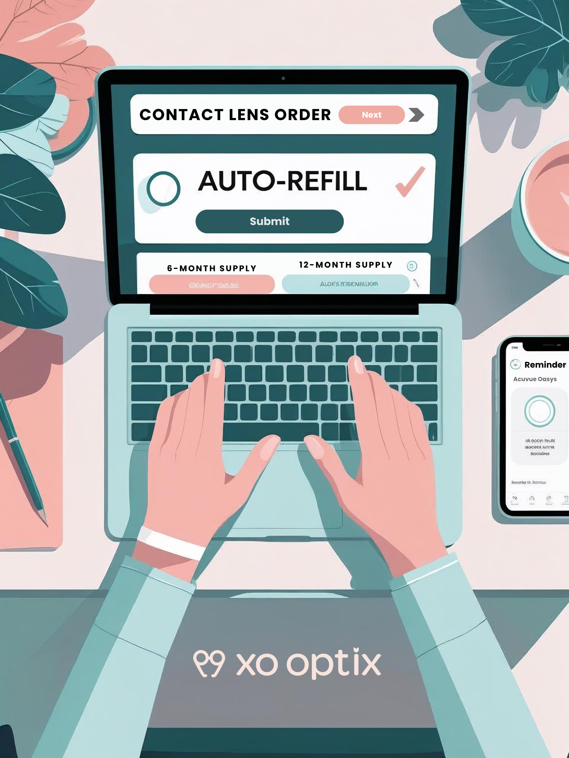 Contact lens and eye-wellness product ordering with auto-refills and reminder alerts.